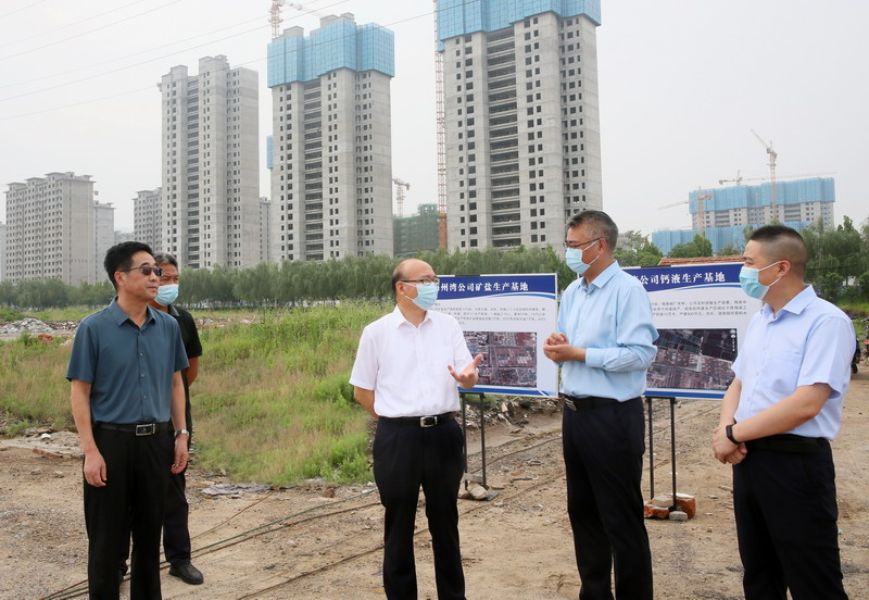 丁銳一行先后到海州灣公司礦鹵復產、翔立市政工程、海州灣工業園、鈣液生產區域和美多利科技創業園等現場,詳細了解鹽業生產、項目建設、土地開發、安全管理等情況,并為奮戰在一線的員工送去防暑降溫物品。