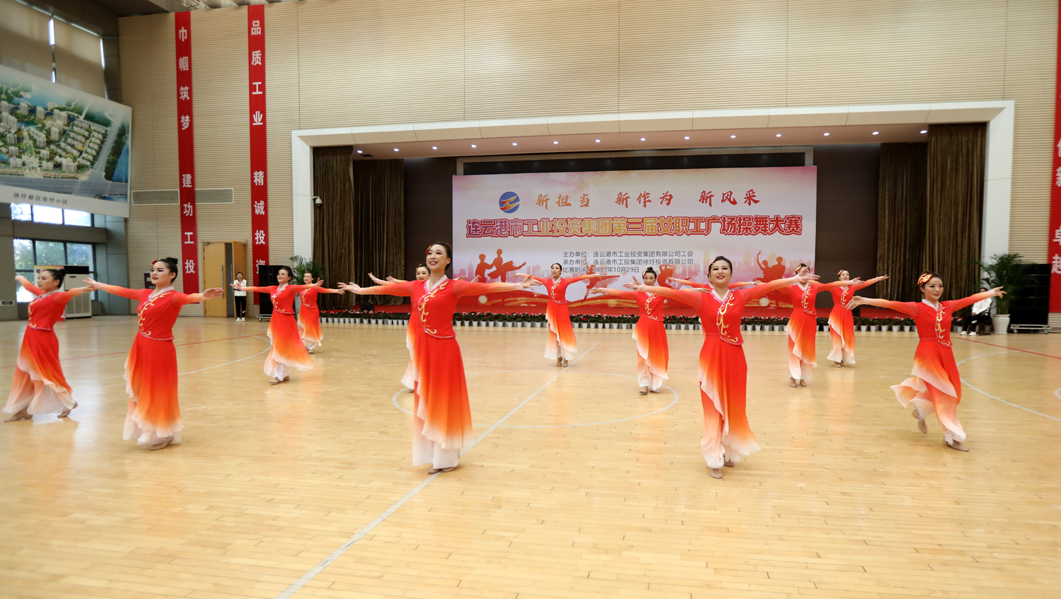 “新擔當、新作為、新風采”,增進職工友誼,凝聚團隊力量。1029日,由集團工會主辦,徐圩投資公司承辦的集團公司第三屆女職工廣場操舞大賽在徐圩新區體育館激情開賽,來自各單位的11支代表隊近150名女職工共同獻上一場精彩的文化盛宴。市婦聯副主席臧永明,集團公司黨委副書記戴鴻鳴、紀委書記汪群、工會主席劉承志等領導參加活動。