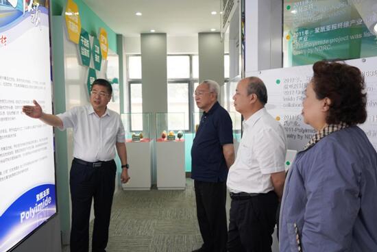 王士華對孫晉良、陳文興院士一行表示熱烈歡迎,并陪同參觀了公司展廳、生產車間以及國家碳纖維復合材料試驗公共服務平臺。在展廳,王士華詳細匯報了企業的發展歷程、產品功能特色、應用領域,以及產品在特種防護、航空航天等領域應用研究進展。兩位院士與對奧神新材料公司近幾年快速發展給予高度評價,充分肯定了奧神新材對我國高性能聚酰亞胺纖維及其后道制品研發工作作出的突出貢獻。