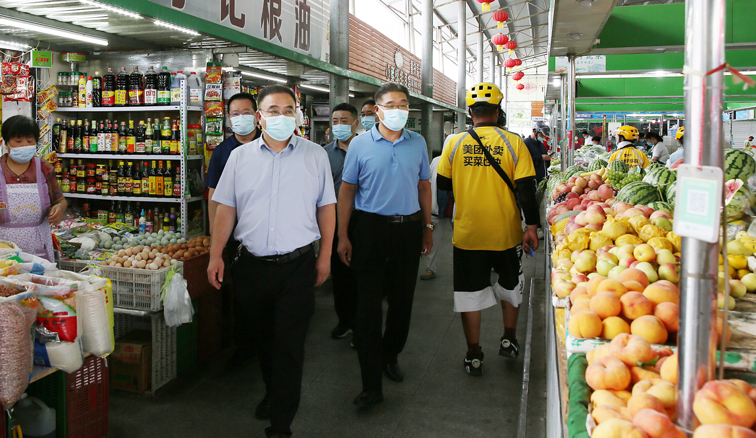 85日,集團公司黨委書記、董事長、疫情防控領導小組組長楊龍深入巨龍農貿市場督導疫情防控工作。他強調,要深入貫徹中央、省市委疫情防控指示精神,保持疫情防控高壓態勢,抓實抓細抓嚴各項措施,守護好市民的“菜藍子”“米袋子”。集團公司工會主席、疫情防控領導小組辦公室主任劉承志,金航資產經營公司相關負責人陪同督導。