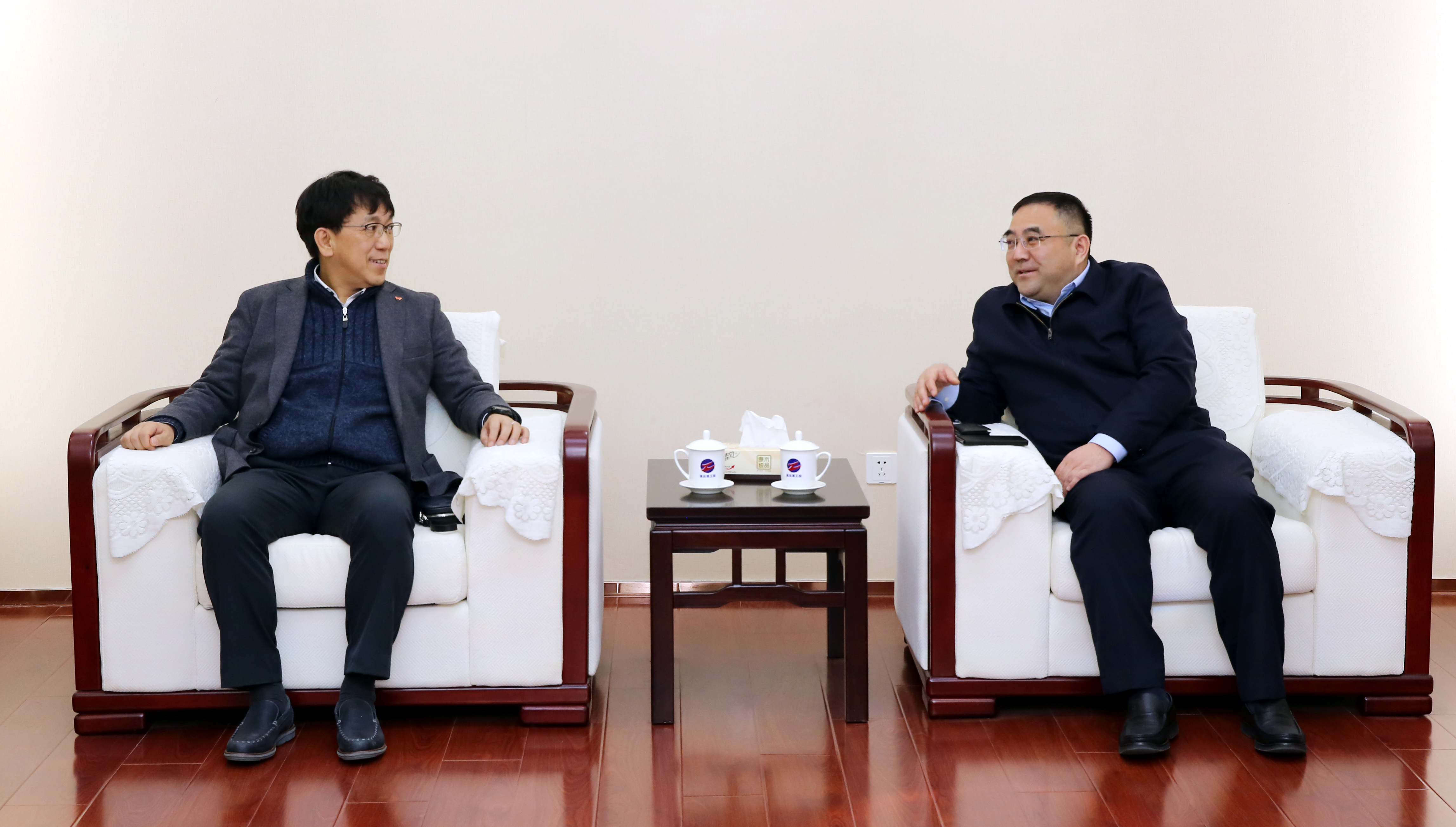 225日上午,集團公司董事長、黨委書記楊龍在總部會見了韓國SKC集團吳濬祿代表一行。雙方就在東海縣開發區合作投資項目進行了座談交流。集團公司常務副總經理楊國新以及資產管理公司相關負責人參加交流活動。