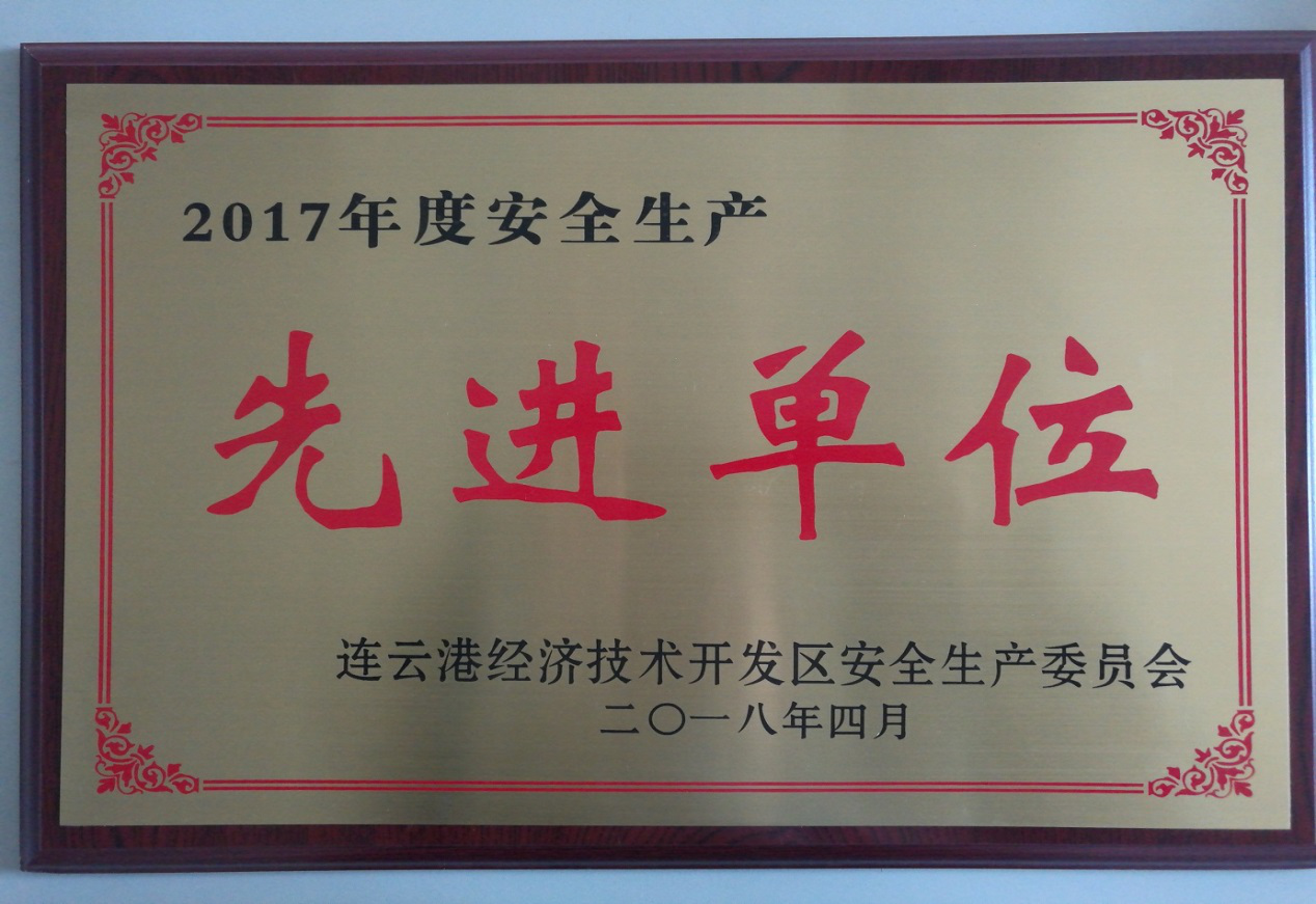 2018年4月28日,開發區2017年度安全生產會議在新海連大廈召開。會上對18家“安全生產先進單位”和26名“安全生產先進個人”進行了表彰。我公司榮獲2017年度開發區“安全生產先進單位”榮譽稱號。氨綸宣