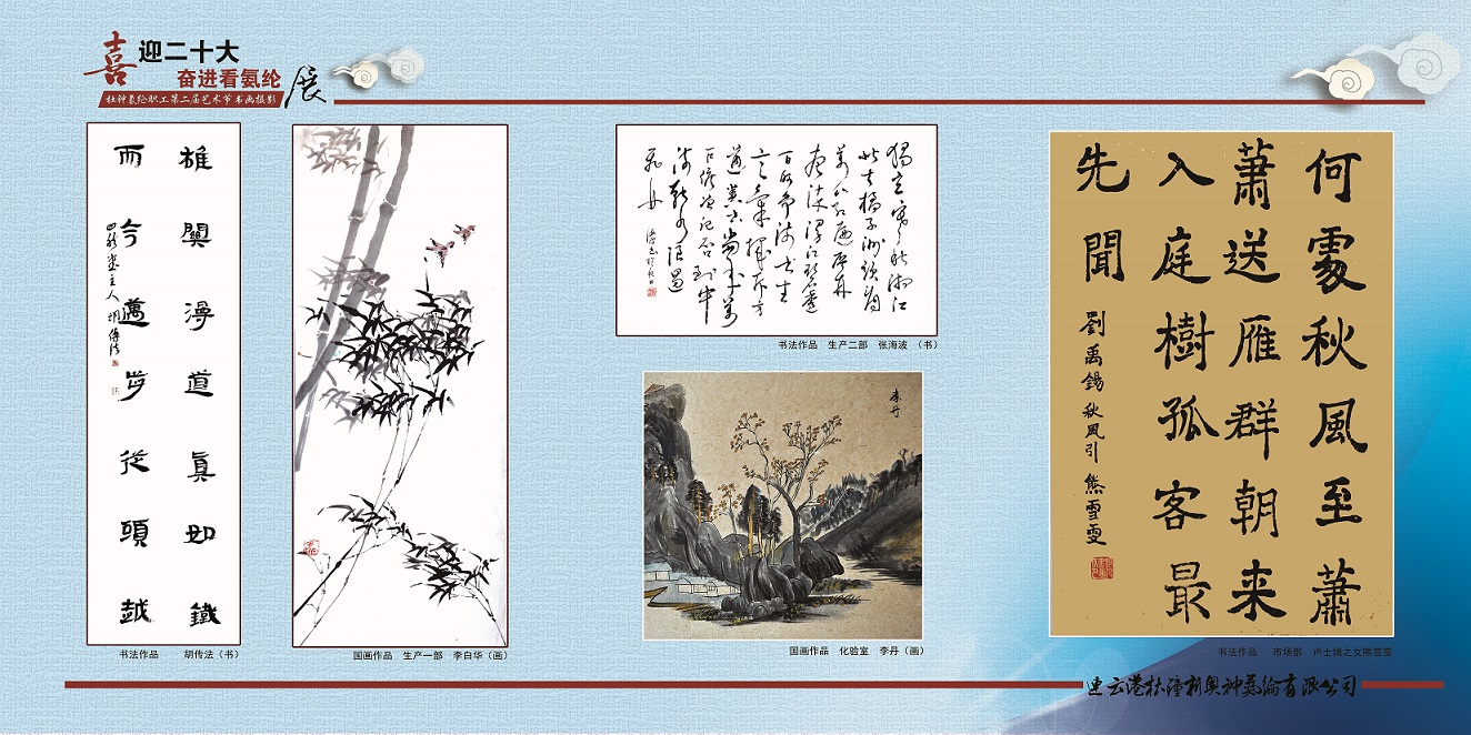 次活動征集80多幅書法、繪畫作品,流派紛呈、形式多樣,從不同的角度展現了祖國的秀美河山、城鄉的風土人情和溫馨的生活場景書法繪畫展豐富了工的業余生活,提高了審美情趣和藝術修養,展現了氨綸公司職工豐富的精神文化生活。