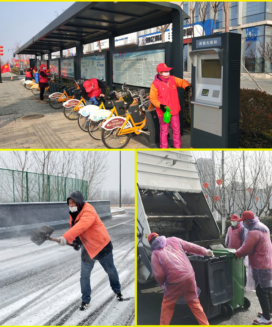 一個(gè)支部就是一座堡壘,在戰(zhàn)“疫”前沿筑起堅(jiān)實(shí)的屏障。2月15日,新年的第一場(chǎng)降雪,給園區(qū)道路覆蓋上一層冰雪,給車輛出行帶來(lái)了不便和交通隱患,同時(shí)也給疫情防控工作增加很大的壓力。晚上7時(shí)許雪一停下,裕升、裕祥、裕欣三個(gè)養(yǎng)護(hù)公司黨支部迅速出動(dòng)黨員突擊隊(duì),協(xié)調(diào)鏟雪車、裝載機(jī)等除雪設(shè)備,帶上10多氯化鈣融雪劑,分散作業(yè),對(duì)轄區(qū)內(nèi)的馬山立交橋、馬山路淡水河橋、東方大道運(yùn)鹽河橋、242省道淡水河橋及新光路涵洞等重要路段撒氯化鈣融雪,對(duì)積雪厚的地方運(yùn)用除雪設(shè)備清理。連夜奮戰(zhàn)4個(gè)多小時(shí),完成所有橋面、主干道路積雪,保證了通行安全。裕祥養(yǎng)護(hù)公司黨支部組織黨員志愿服務(wù),對(duì)園區(qū)公交站臺(tái)、公共自行車站點(diǎn)、創(chuàng)智大廈銀行網(wǎng)點(diǎn)等區(qū)域進(jìn)行滅菌消毒,將戰(zhàn)“疫”陣線延伸拉長(zhǎng)。瑞泰服務(wù)公司黨支部針對(duì)疫情防控期間小區(qū)居民減少外出,生活垃圾量陡增的情況下,發(fā)揮黨員先鋒模范作用,合理調(diào)度車輛,加班加點(diǎn),及時(shí)清運(yùn)垃圾,確保小區(qū)衛(wèi)生。每天清運(yùn)垃圾700余桶,累計(jì)50余噸重,往返垃圾處理廠5個(gè)車次,整個(gè)行程200多公里。設(shè)立廢棄口罩專用垃圾桶,對(duì)所有垃圾堆放點(diǎn)及垃圾桶每天進(jìn)行消毒。”