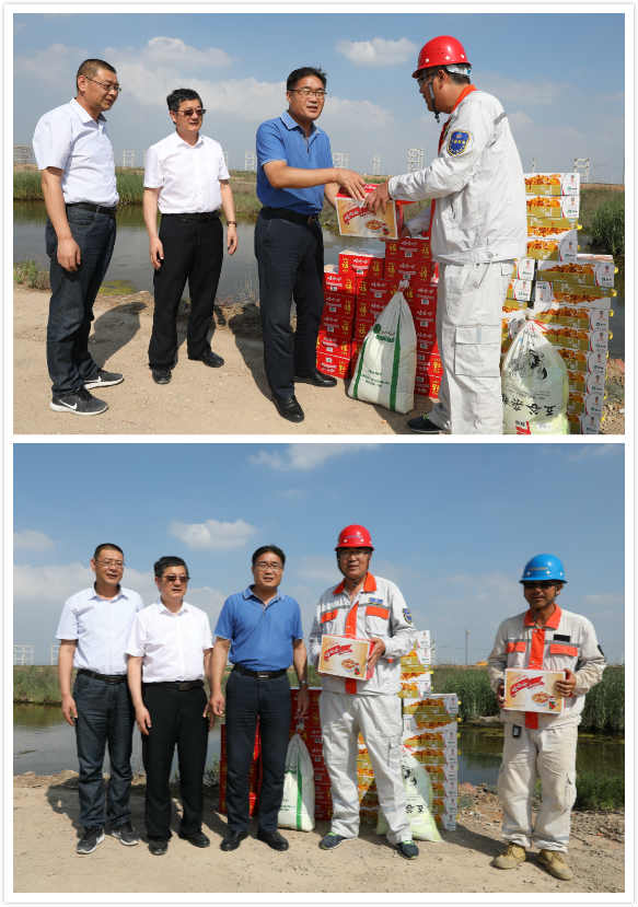 7月20日下午,集團公司工會主席劉承志,副主席盧同根一行,深入公司施工一線,走訪慰問職工,把綠豆、飲料等防暑降溫用品送到他們手中,在炎炎夏日,為一線職工送去集團公司的深切關懷。