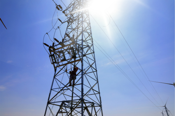 14至18日,灌西供電所轄區(qū)。為了保證7月18日順利完成和風(fēng)風(fēng)電西線線路工程,施工現(xiàn)場一片熱火朝天的景象,電力施工人員正頭頂烈日,揮汗如雨,正在緊張施工。“施工中一定要注意安全,打好安全帶和保險(xiǎn)繩,防止中暑”灌西供電所所長,施工總負(fù)責(zé)人馬德松囑現(xiàn)場施工人員。烈日中野外施工既拼體力,更拼毅力,施工材料被曬得燙手,鐵塔只能戴手套才能攀爬,施工人員衣服汗透被曬干,曬干再次被汗透,施工環(huán)境十分艱苦。為了趕工程進(jìn)度,施工人員戰(zhàn)高溫、斗酷暑,但沒有一個(gè)人叫苦叫累,經(jīng)過5天苦戰(zhàn),工程順利結(jié)束。