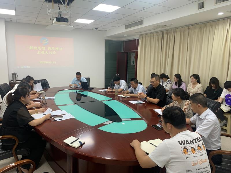8月12日上午,公司機關黨支部開展“解放思想、提質增效”主題大討論活動,公司黨委副書記、工會主席王志軍,總經理助理徐健,機關全體工作人員參加討論。會議由機關黨支部書記宋云主持。