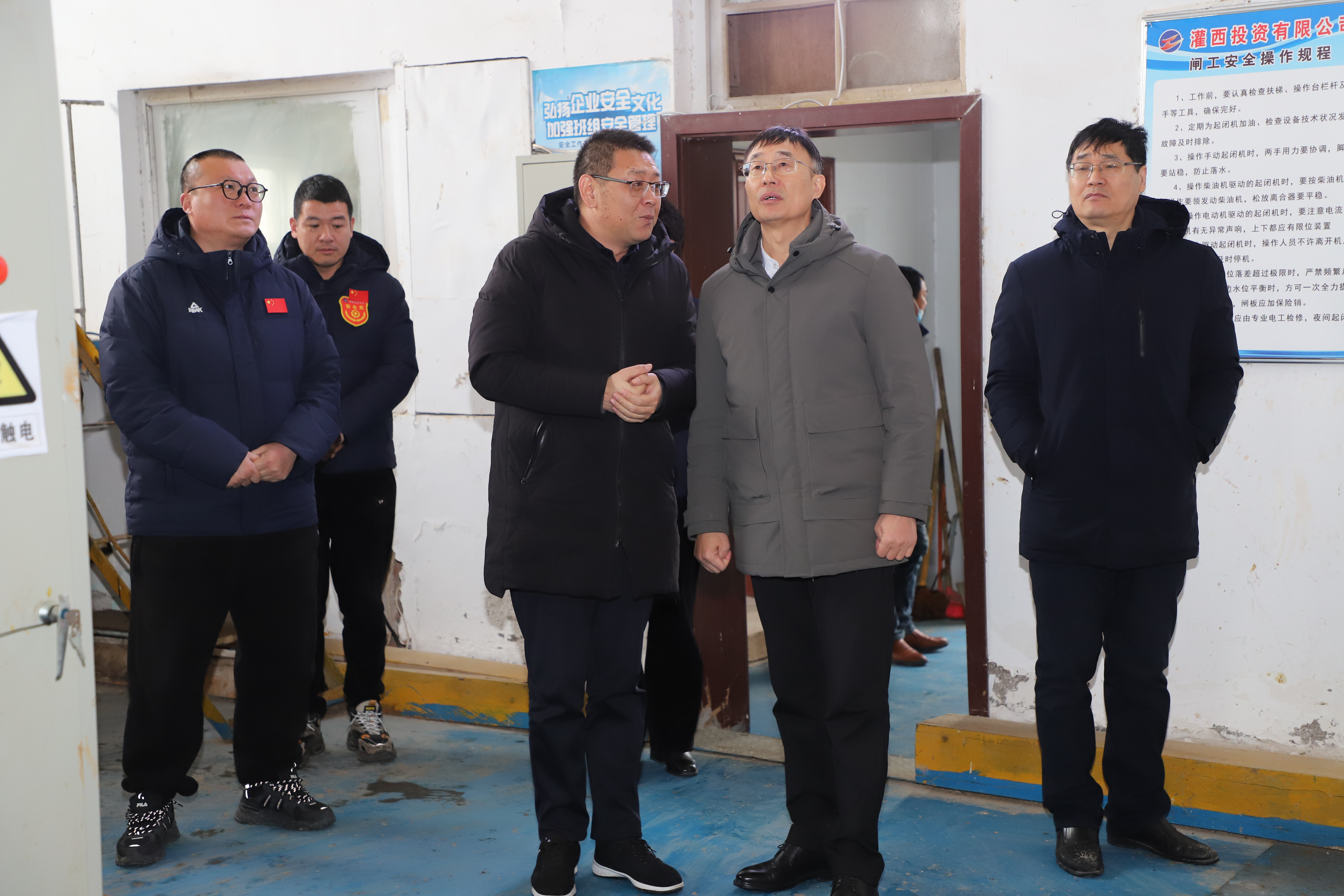 2月1日,集團公司總經理張六林一行來灌西投資公司督導春節前安全工作。公司黨委書記、董事長孫政權、常務副總經理徐一林、黨委副書記、工會主席王宏陪同檢查。
