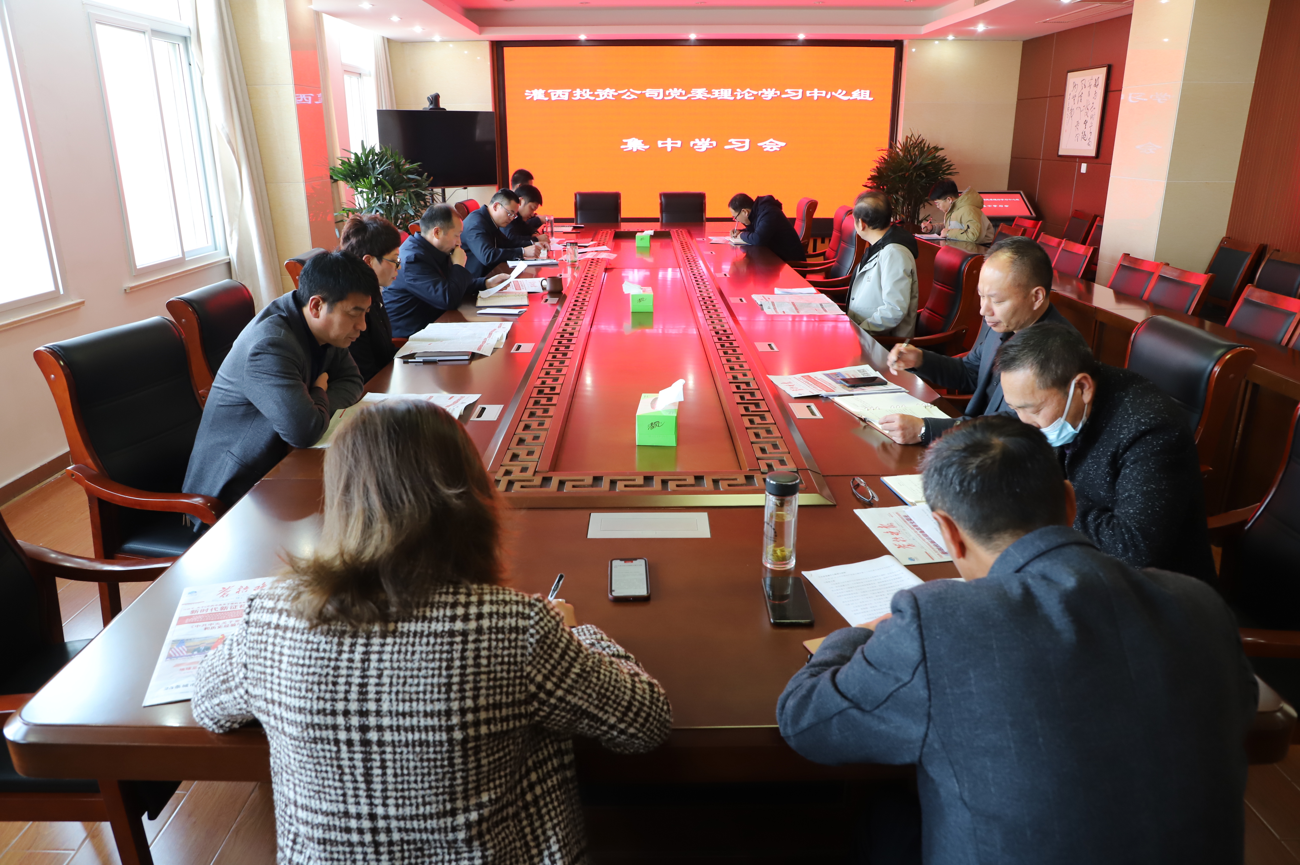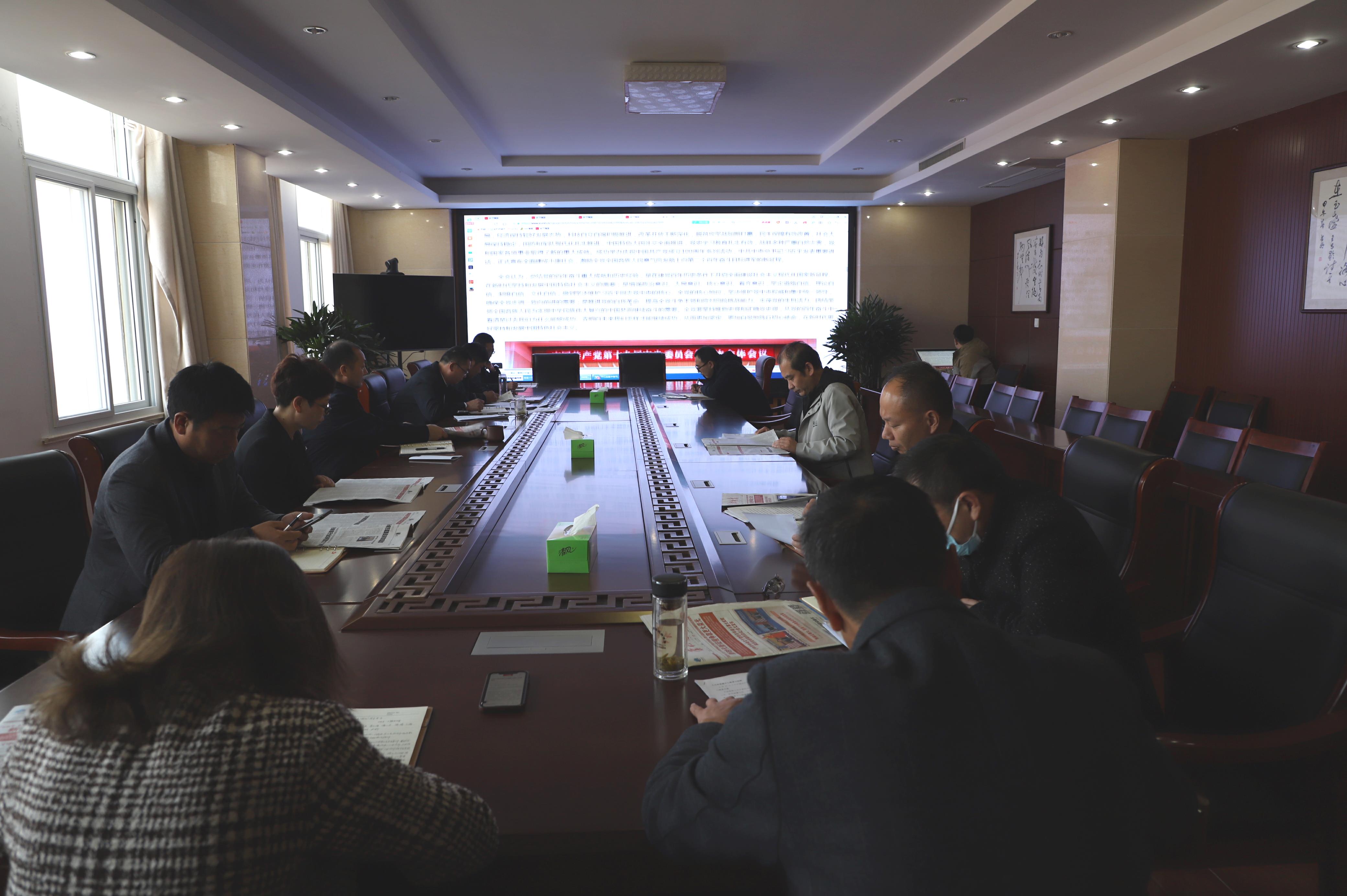 1119日下午,灌西投資公司黨委召開十一月份中心組學習會,深入學習貫徹黨的十九屆六中全會精神。公司領導班子全體成員、黨群部門負責人等參加學習。