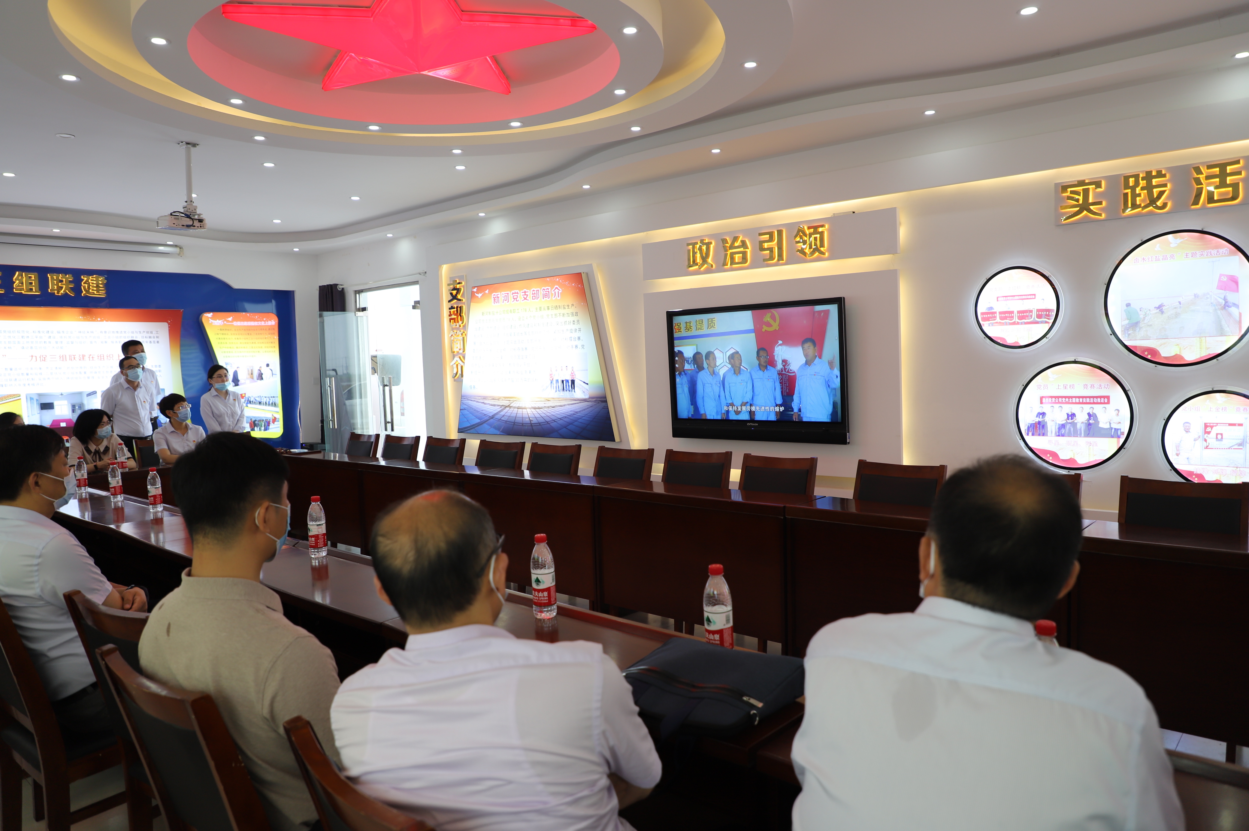 城建控股集團(tuán)產(chǎn)改調(diào)研組一行分別到日曬制鹽公司新河分公司黨建活動(dòng)室、八班班組活動(dòng)室以及灌西投資公司的廉政文化展廳、職工書屋等處參觀學(xué)習(xí),觀看了黨建帶工建專題片《“四+模式”助推勞模創(chuàng)新工作黨支部“雙創(chuàng)雙提升”》和《安樹林勞模創(chuàng)新工作室科技創(chuàng)新成果》視頻介紹,在隨后召開的交流會上,劉承志、李國文分別就工投集團(tuán)和灌西投資公司的產(chǎn)改工作進(jìn)行了交流。
