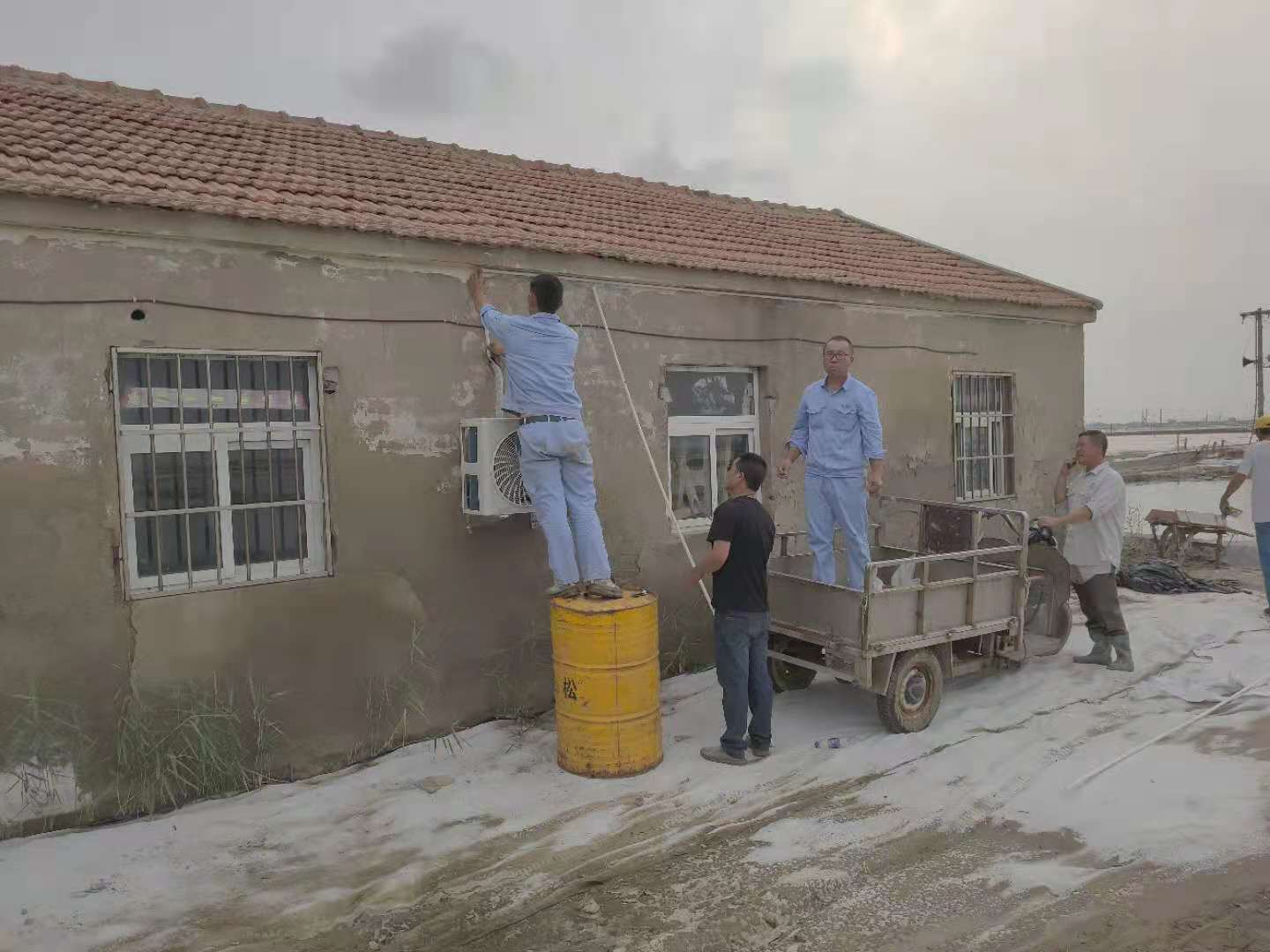 高溫酷暑、炎炎烈日下,在日曬制鹽的灘頭到處都是大汗淋漓、被曬得黝黑的鹽工們,因為他們的堅守和辛勤付出,才有了公司屢創(chuàng)佳績的今天?!爸蛋嗍姨珶崃耍归g值班無法休息?!丙}工有訴求,組織有回應,公司為此按程序集中采購了一批空調(diào)。為能更快更好將空調(diào)安裝至各班組值班室,維護工們不辭辛勞與安裝人員一起加班加點,現(xiàn)已全部安裝到位。