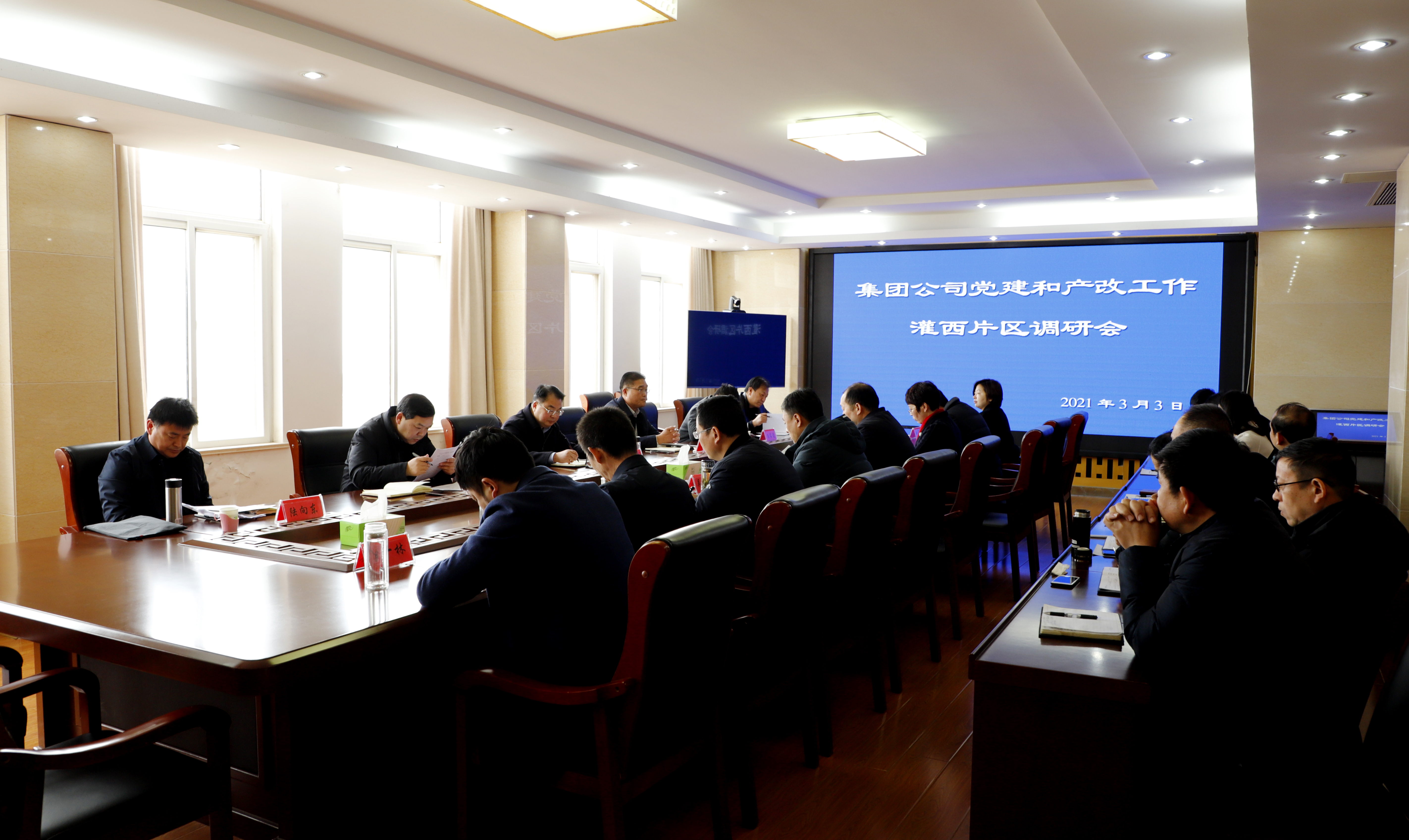調研會上,戴鴻鳴一行首先認真聽取了灌西黨建和產改工作匯報,詳細了解了節后經營生產和發展狀況,黨建品牌以及產業工人隊伍建設的特色做法等。戴鴻鳴對灌西在黨建和產改工作上的成績給予了充分肯定。他指出,要總結經驗、改革創新,在黨員學習教育、員工隊伍建設上,要進一步深化改革,把黨建和產改工作做成灌西展示的窗口、對外的平臺、產業的翹板、發展的動能。