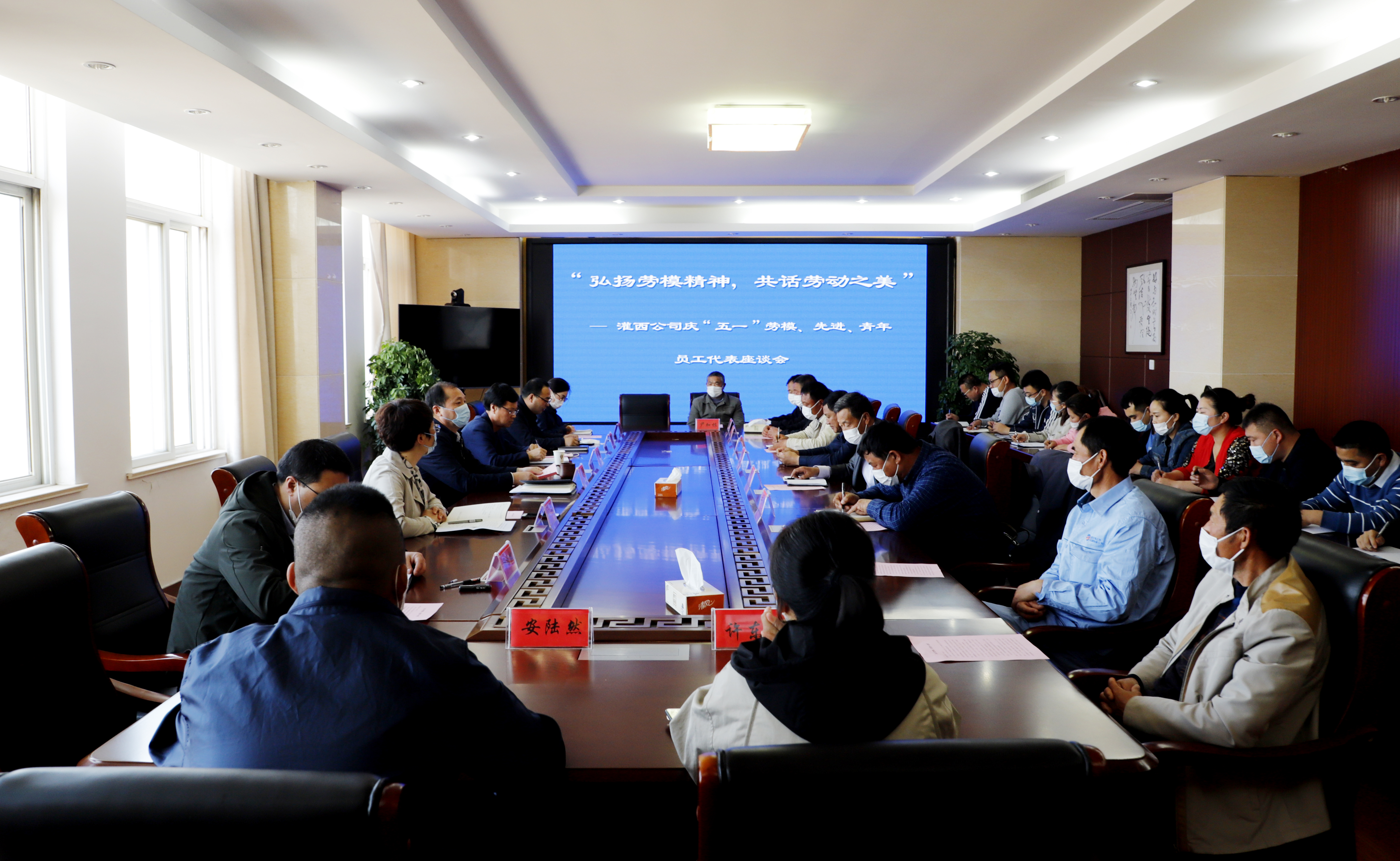 為慶祝五一國際勞動節,進一步弘揚勞模精神和勞動精神,為公司的高質量發展提供精神動力。429下午灌西公司在機關三樓會議室召開慶五一勞模座談會。黨委書記、董事長、總經理李國文,常務副總經理古浩光,黨委副書記、紀委書記、工會主席王宏以及來自公司各條戰線的勞動模范、先進、青年員工代表40余人參加座談會。