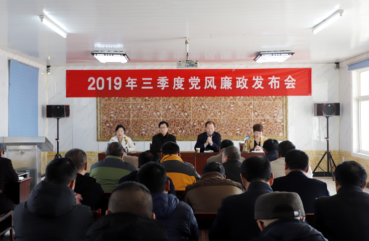 會上,發(fā)布了2019年三季度黨風(fēng)廉政建設(shè)情況,通報了公司在三季度大宗物資采購、海淡水養(yǎng)殖池塘承包費收繳、工程項目建設(shè)、業(yè)務(wù)招待費用使用、人力資源管理、民生實事等方面的情況。
