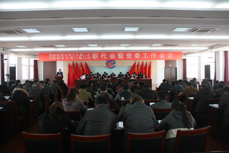 3月16日,灌西投資公司十五屆二次、日曬制鹽公司二屆二次職代會暨黨委工作會議在聯(lián)合服務(wù)中心五樓會議室隆重召開。公司董事長、黨委書記王德志作黨委工作報告,總經(jīng)理李國文作總經(jīng)理工作報告,紀(jì)委書記王保平作紀(jì)委工作報告。會議審議并通過了有關(guān)方案,簽訂了2016年度集體合同,宵洋、南翼、銷售部等單位和部門負(fù)責(zé)人分別遞交《2016年目標(biāo)責(zé)任認(rèn)標(biāo)書》、《黨風(fēng)廉政建設(shè)責(zé)任書》并作表態(tài)發(fā)言,大會還對2015年度先進單位、先進部門、先進班組、先進個人、廉潔之星進行了表彰。