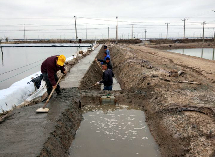11班生產現場,職工們正在進行溝道清淤,池堰修整工作。11班是黨員模范班組,這個班冬準工作進度比別的班組快一些,班長章保衛激情豪邁,信心飽滿,干好當前,備戰明年,我們班的冬準工作標準要高,質量要硬,進度要快,要確保各項工作走在公司前列,去年冬準,我們對一期灘場進行了維護保養,今年冬準工作重點放在二期,到2019年冬準再把一,二期灘場維修保養一遍,那我們公司的生產能力、灘容灘貌將會上一個新的臺階,將會跨進制鹽行業的前列,這是一個敢想,敢干的年輕黨員,在他的心中己經描繪一幅日曬制鹽明天發展的美好藍圖。其他生產班組,有的在維護灘場,清理雜草雜物,有的在修建標準化廩基,冬準工作有序推進,處處都可以看到火熱的勞動場面。
