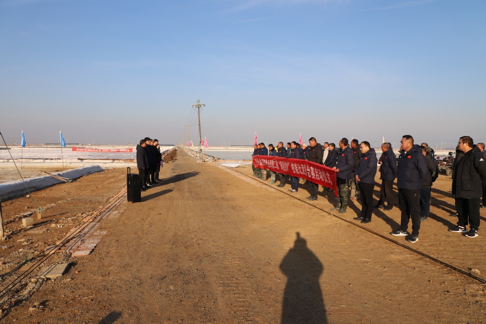 在新河制鹽分公司5班灘頭,總經(jīng)理吳衛(wèi)平作動員講話,裁判長沈玉波宣誓董事長孫政權(quán)宣布“‘薪火灌筑 匠星西傳’師徒結(jié)對擂臺賽”正式開始!