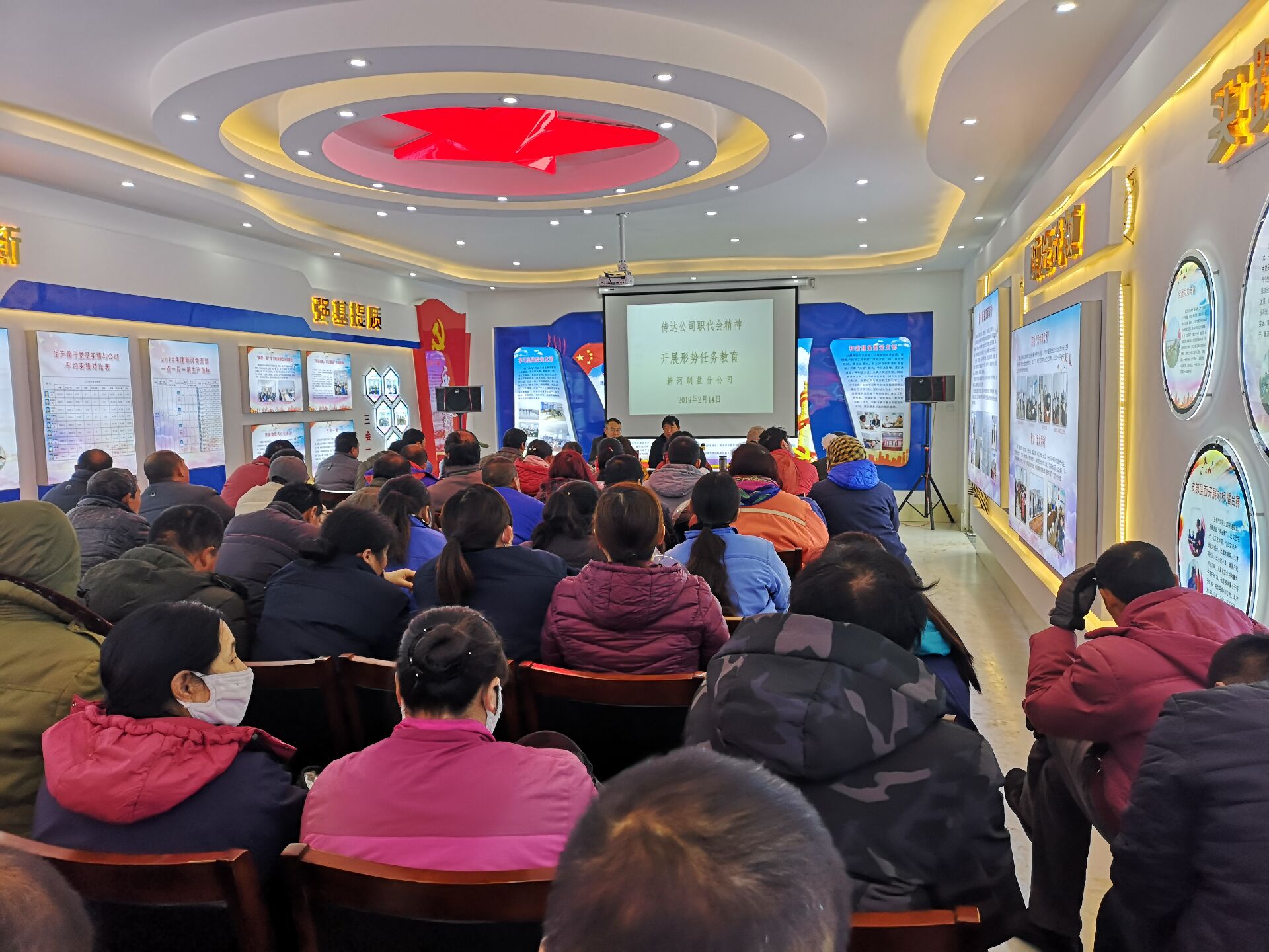 2月14日,在新河制鹽黨員活動室召開全體員工大會。共170余人參加會議,宣傳學習貫徹兩級職代會精神,讓職代會精神深入人心,會上還就班組團結、穩定等方面從不同角度作具體分析要求。對2019年安全生產工作作重點規劃安排。目標已規劃,任務已明確,分解到班組,一年之計在于春,抓緊抓早抓實,保持昂揚斗志,迎難而上,大干當前,為完成全年30萬噸目標,打下堅定的基礎。(江德前)