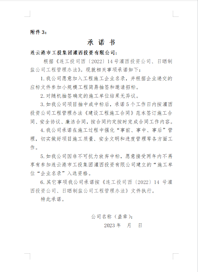 灌西投資有限公司 日曬制鹽有限公司關于建立國有資金投資小規模工程施工“企業名錄”的公告