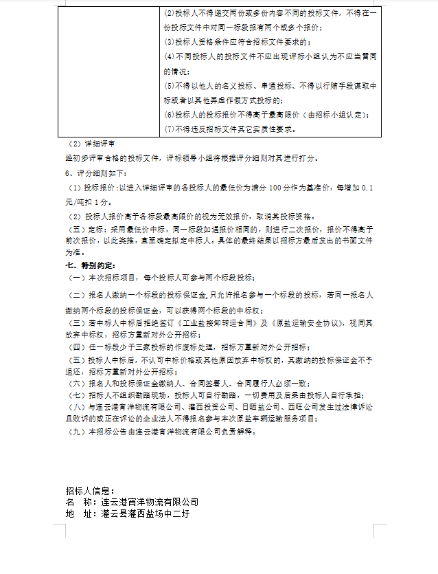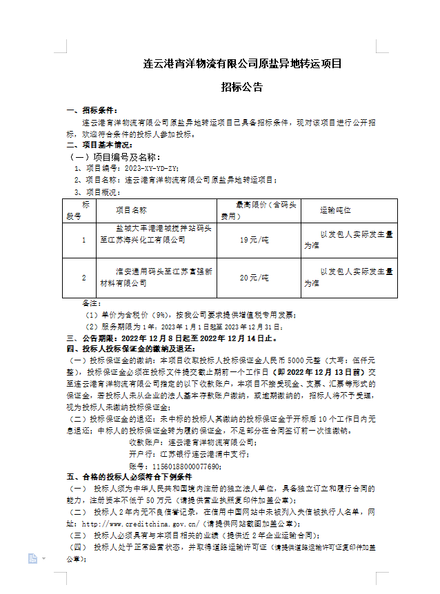 連云港宵洋物流有限公司原鹽異地轉(zhuǎn)運(yùn)項(xiàng)目招標(biāo)公告