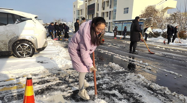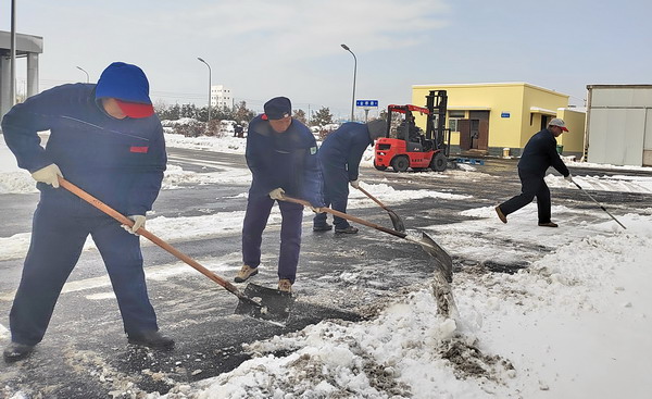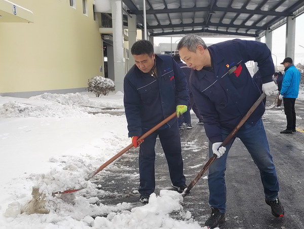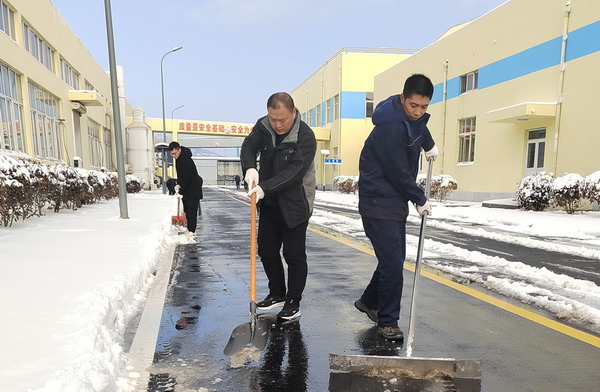 在做好本車間單位“門前三包”掃雪除冰工作的同時,公司員工沒有“自掃門前雪”,積極發揚志愿服務精神,切實履行社會職責,還清除了周邊廠區外非機動車道上的積雪積冰。