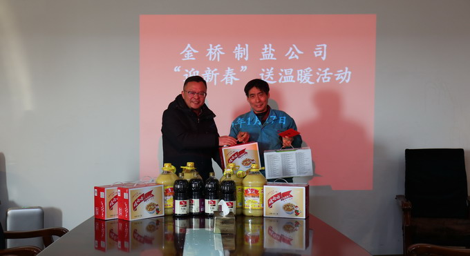 1月17日上午,我公司開展“迎新春”送溫暖活動。公司黨委書記、總經理田磊,黨委副書記、紀委書記、工會主席曹開明和副總經理李忠祥代表公司慰問困難黨員和困難職工,為他們發放油、牛奶等慰問品和慰問金,囑咐他們要克服困難、樹立信心,保持積極向上的心態,早日走出困境。(金宣)