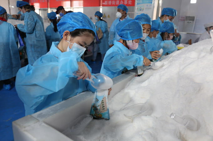 小朋友們首先參觀了包裝鹽車間生產線,對制鹽過程有了直觀的認識,接著來到雪花鹽車間體驗手工包裝,提升參與感、獲得感。此次參觀體驗活動,讓小朋友近距離感受家鄉的淮鹽魅力,很好的傳承了淮鹽文化。我公司作為省級文明單位,近年來,積極履行社會責任,多次與灌南縣尹蕩村、連云區大竹園村等單位開展文明共建,爭做文明使者,彰顯國企擔當。(金宣)