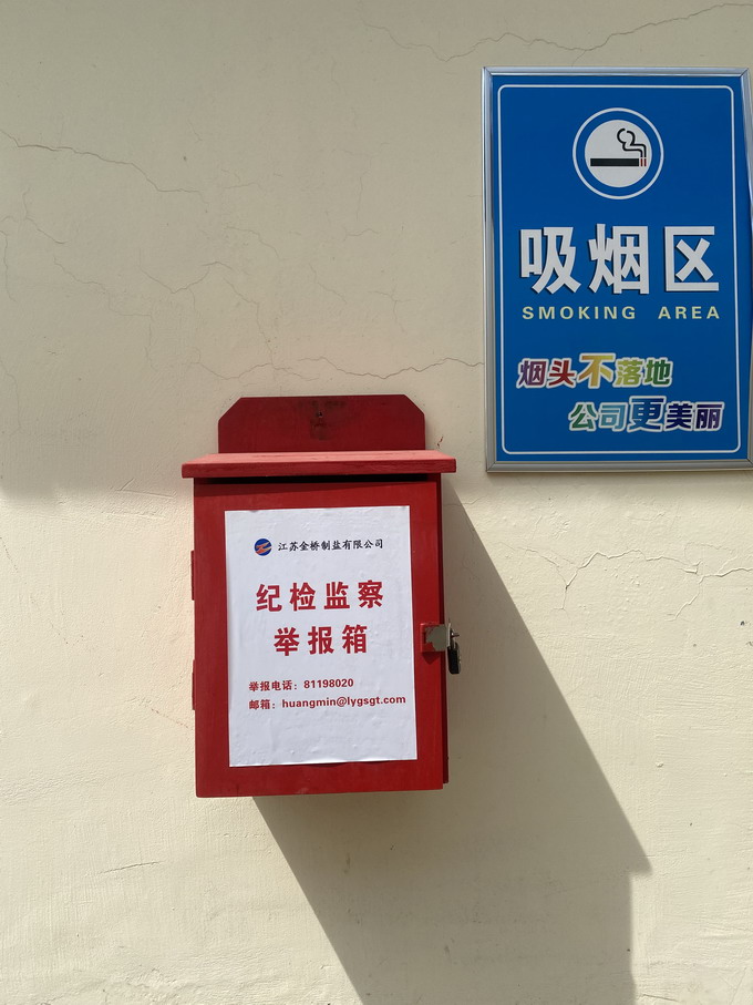 一、紀檢監察舉報箱,設置在配送中心吸煙區(非視頻監控范圍)。
