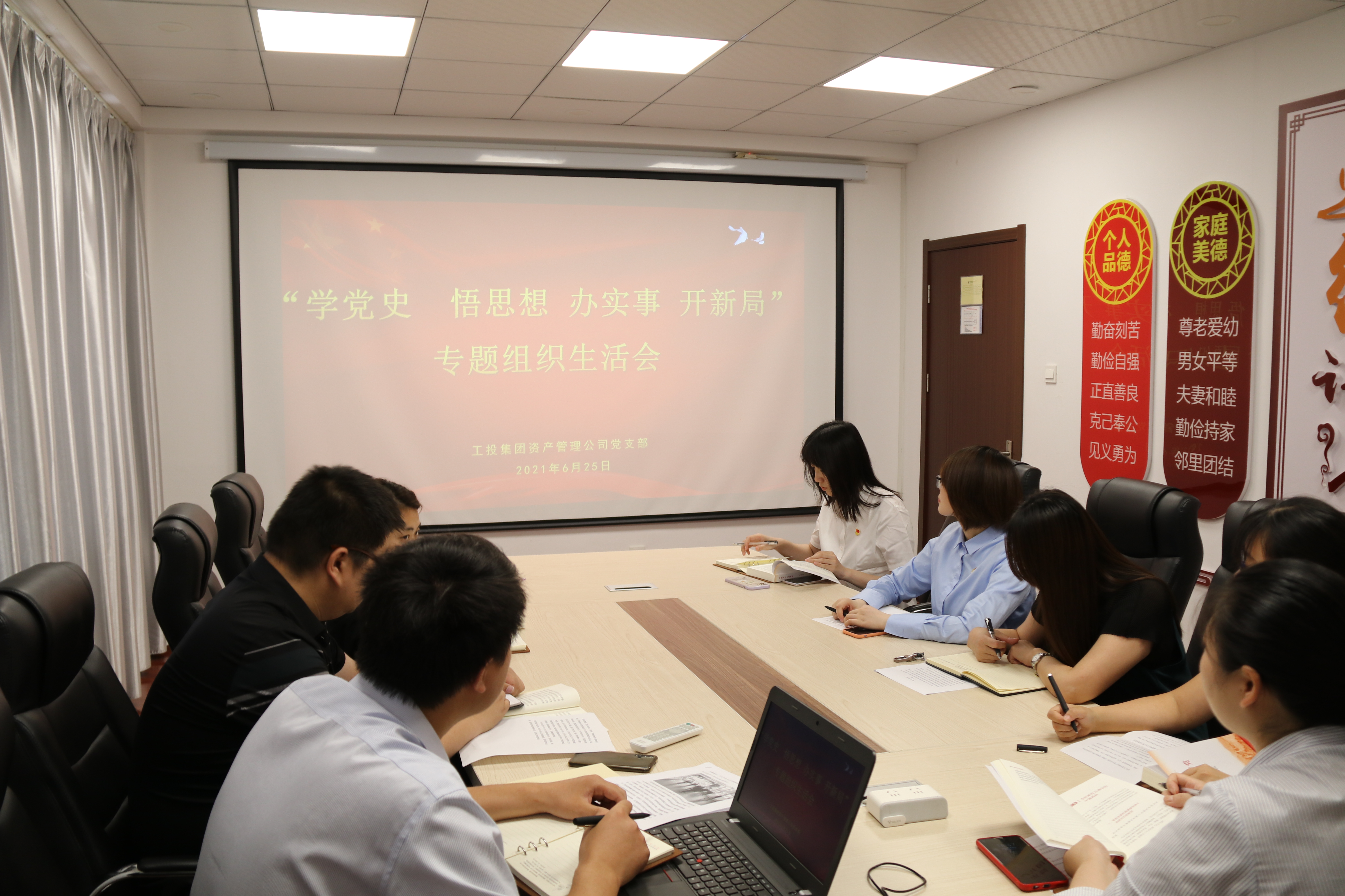 根據集團黨委、公司黨支部黨史學習教育工作安排,6月25日,資產管理公司黨支部以“學黨史 悟思想 辦實事 開新局”為主題召開專題組織生活會。會議分四個黨小組開展,支委領導分赴各黨小組,以普通黨員身份開展黨性分析,一起學習討論、一起交流心得、一起接受思想教育。