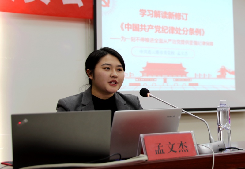 學(xué)《條例》,明紀(jì)律。特邀請(qǐng)市委黨校孟文杰老師,對(duì)新修訂的《中國(guó)共產(chǎn)黨紀(jì)律處分條例》進(jìn)行專(zhuān)題輔導(dǎo)。孟老師從深刻理解《條例》修訂的重要亮點(diǎn)、準(zhǔn)確把握《條例》修訂的主旨要義、切實(shí)抓好《條例》的貫徹執(zhí)行三個(gè)方面作了精彩解讀,并堅(jiān)持理論密切聯(lián)系實(shí)際,結(jié)合與修改內(nèi)容相關(guān)的案例及視頻,提醒廣大黨員干部嚴(yán)于律己、防微杜漸,讓全體黨員干部受益匪淺。