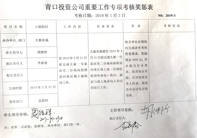 【表單考核】青口投資公司重要工作專項考核獎懲表