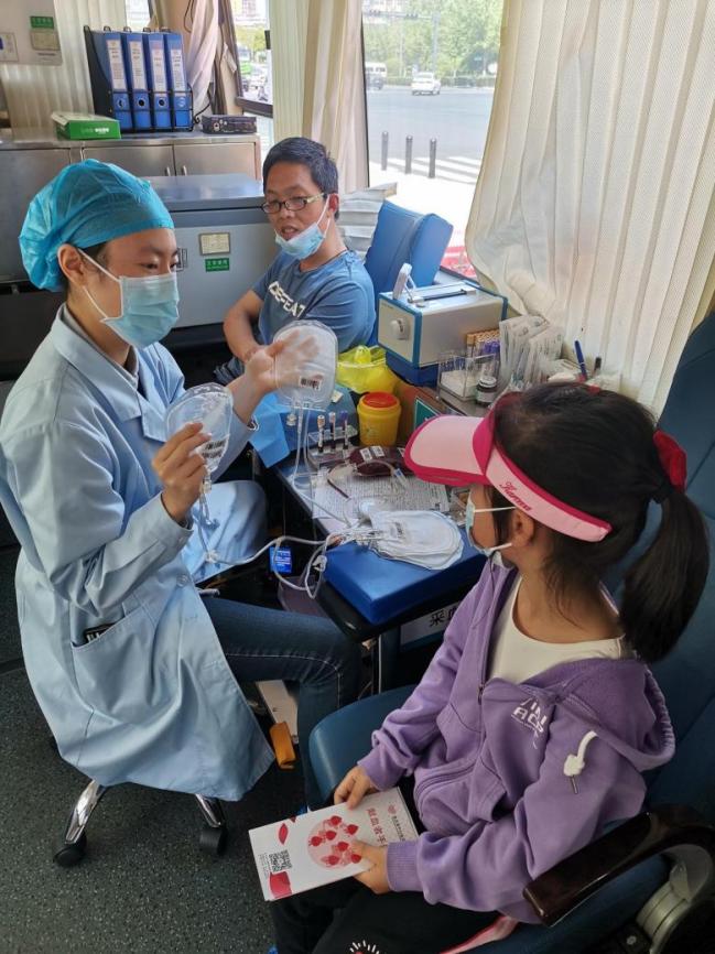 我的女兒很好奇,左瞅瞅右看看,我剛提醒她上面不能亂走,護士卻說,“沒關系,有什么不懂的可以問我。”。于是,瞬間打開了她心中的“十萬個為什么”,她一會問問血液為什么是紅色的,一會問問這個設備是做什么的,后來問道小本子上那些字母干什么,為什么有的要畫一下?我們都給問蒙了,后來才想到她看過我十年前的獻血本,上面有血型勾選的;護士可能也是工作幾年的,不好意思的說,“我沒見過那樣的”。十幾分鐘的獻血很快就結束了,但是她們的對話仍在持續(xù),直到又有人上來了,才依依不舍的和護士姐姐再見,跟著我們一起離開。