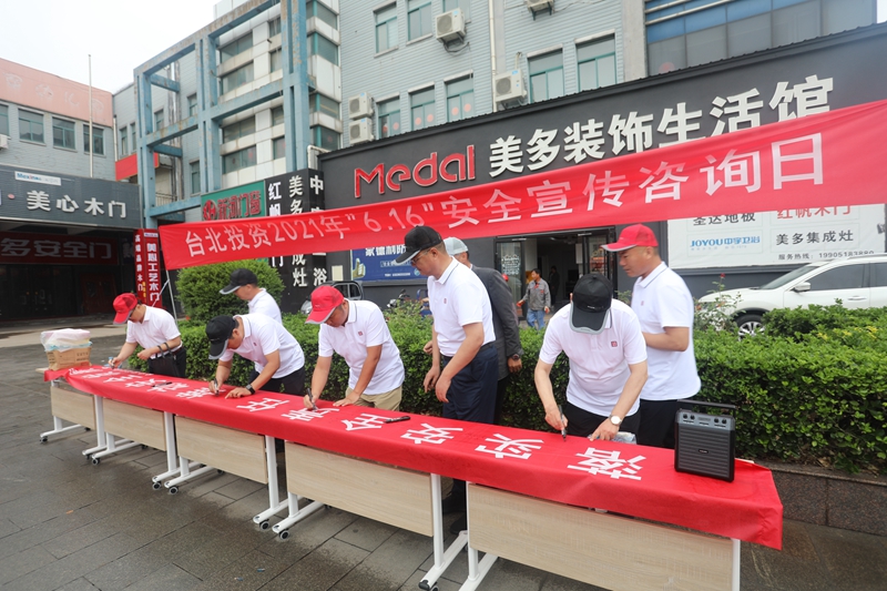 今年6月是第20個(gè)全國(guó)安全宣傳月。6月16日,投資公司領(lǐng)導(dǎo)班子全員參加,圍繞“落實(shí)安全責(zé)任,推動(dòng)安全發(fā)展”主題,組織20余名安全管理人員在光伸建材廣場(chǎng)開展“6.16安全生產(chǎn)宣傳咨詢?nèi)铡被顒?dòng)。