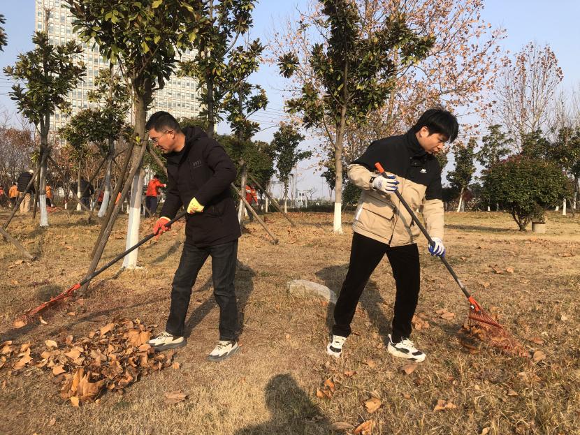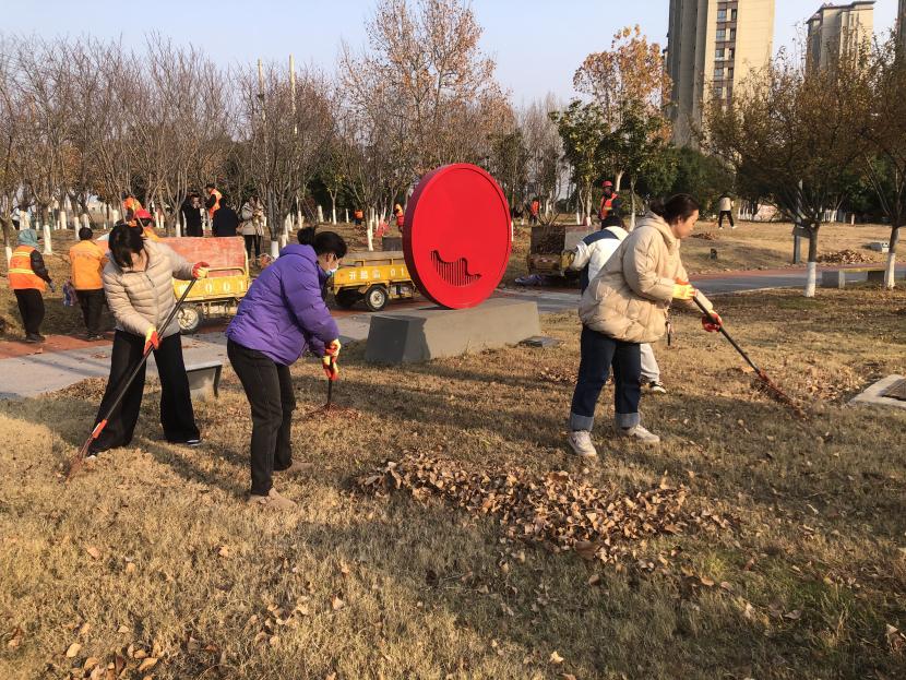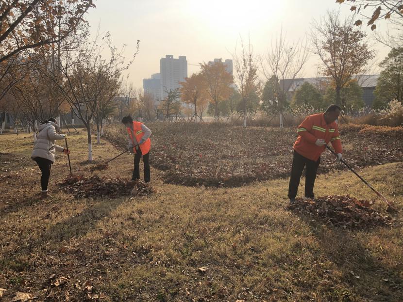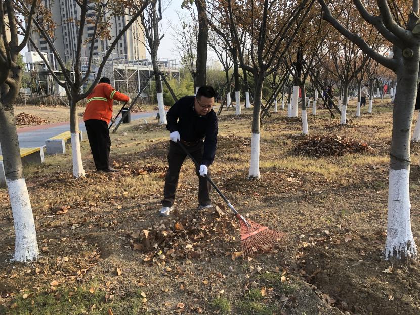 活動現場,黨員同志、積極分子分為兩撥,分別從創智綠園北門和東門對園內雜草落葉進行清除。在戴好手套,做好防護、防凍措施的同時,紛紛拿著掃帚、耙子工具,統籌安排、分工勞作,齊心協力,有的用掃帚掃落葉、有的用袋子裝落葉、有的用耙子摟落葉……大家忙得熱火朝天,充分發揚不怕臟、不怕苦、不怕累的黨員先鋒本色,創智綠園內處處是同志們清理雜草落葉的身影,構成了一道亮麗的風景線,經過一個多小時的辛勤勞動,兩撥隊伍順利“會師”,沿途雜草落葉被清理得干干凈凈,公園環境也得到明顯改善。