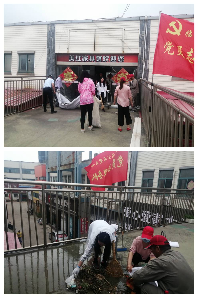 圍繞臨達公司資產經營業務7月21日,臨達黨支部組織開展“黨員奉獻日”活動,志愿服務隊到光伸家具市場,對過道、門前的環境衛生進行了清掃。通過活動開展,與商戶對營造良好經營氛圍形成共識,共同打造干凈、整潔、舒適的營商環境,提升臨達公司形象,促進公司與商戶的和諧關系,形成人人參與、齊抓共管的良好氛圍。