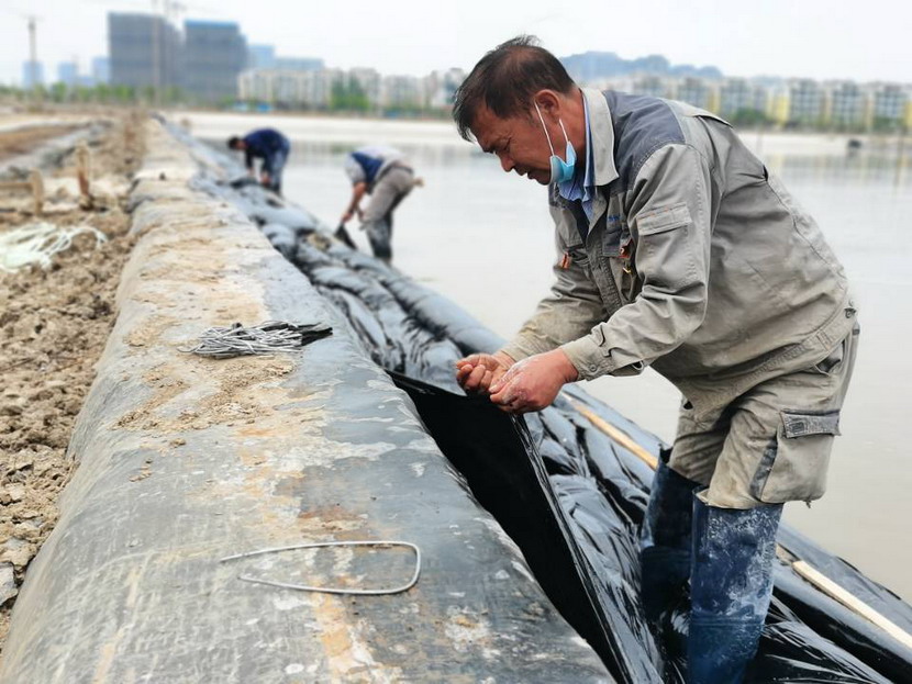 比賽共分為四組,每組6人。賽前,為公平起見,技能比武裁判組制定了詳細(xì)的評分規(guī)則,以小組為單位,裁判組依據(jù)各小組的塑布完整度、壓條銜接度、上墻布的牢固性等多個專業(yè)的技術(shù)環(huán)節(jié)進行現(xiàn)場打分,評選出在2個小時內(nèi),同規(guī)模、同長度、同條件格堰,塑布安裝質(zhì)量最高的小組選手獲勝。