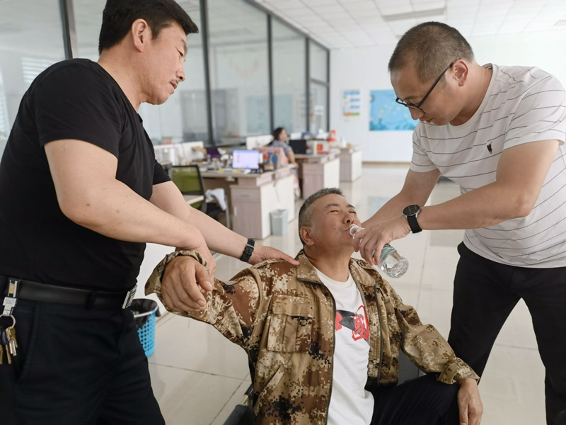 隨后演練開(kāi)始,大家迅速轉(zhuǎn)移中暑職工轉(zhuǎn)移至通風(fēng)、陰涼、干爽的地方。