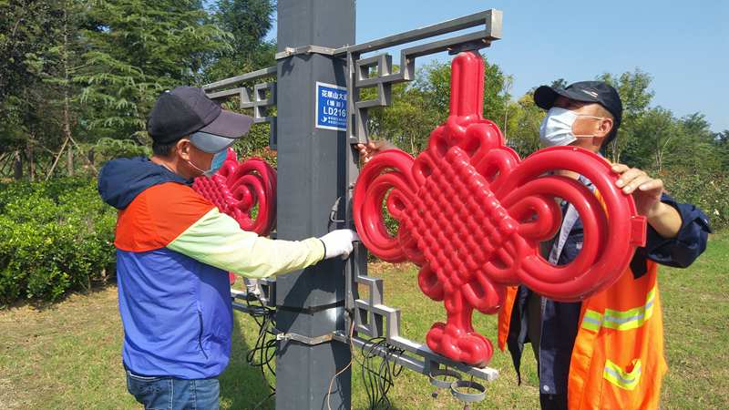 和往年一樣,今年“中秋”“國慶”兩節(jié)前夕,資源管理分公司組織公司精兵強(qiáng)將加入到翔立分公司兩節(jié)前道路亮化景觀突擊行動(dòng)中,該公司這些志愿者隊(duì)員有的維修破損的中國結(jié)紅燈籠等亮化燈,有些負(fù)責(zé)安裝、運(yùn)輸,為在節(jié)前加快完成安裝任務(wù)貢獻(xiàn)了自己的力量。圖為該公司志愿者在安裝自貿(mào)區(qū)主干道上的“中國結(jié)”亮化路燈。