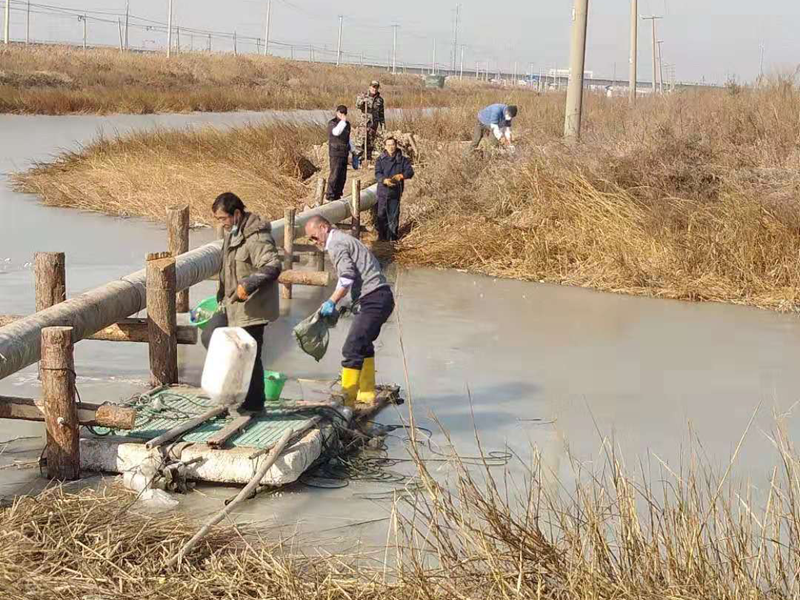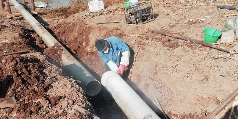 方案是拿出來了,但苛刻的現場環境、嚴峻的施工條件像冬季的陰霾再度籠罩在大家心頭!河對岸無交通橋梁人員無法直達對面,利用船只過河又面臨著河面結冰。以往這種距離的過河都是采用PE管(質地柔軟彎曲性能優越),但購買PE管道的成本太高。玻璃鋼管道本來就比較脆弱易碎,更何況是三節連接在一起長達36米的過河管道,這在鹽場管道施工史上還沒有先例。