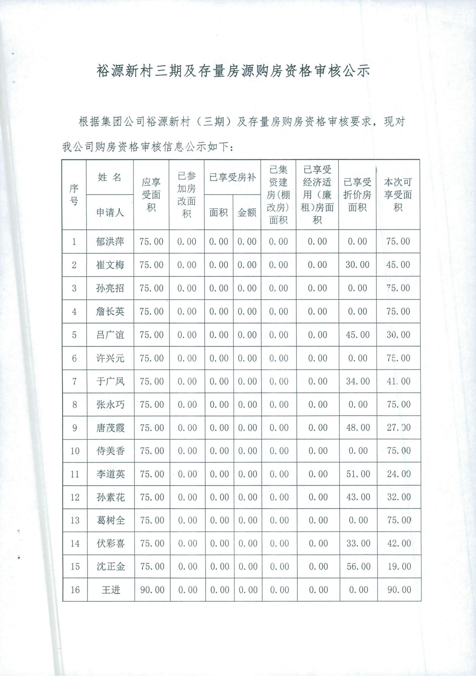 裕源新村三期及存量房源購房資格審核公示